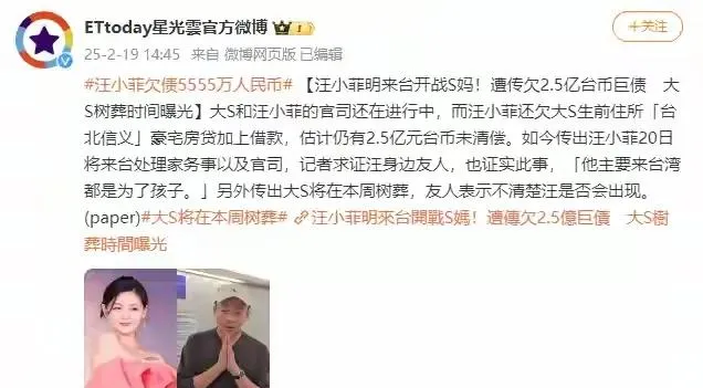根据湾湾法律,孩子的遗产继承由监护人代管,这意味着一旦孩子归S家抚养,所有与大S相关的财产,包括那笔“2.5亿追讨”,都将被S家掌控。